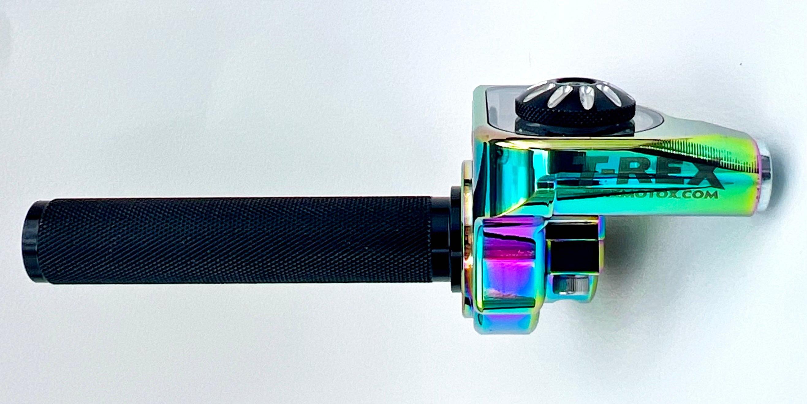 Our T-Rex Billet Throttles are a direct replacement for Cobra, KTM, Husqvarna, Gas Gas, Honda, Yamaha, Kawasaki, and Sherco. Made from billet aluminum with a sealed bearing cable pivot and a one piece billet aluminum throttle tube. These throttles reduce hand fatigue, and are smoother and stronger than factory throttles. The removable safety window allows for easy carburetor service and quick cable inspection. Thousands of hours testing and developing this high performance throttle. AMA legal.