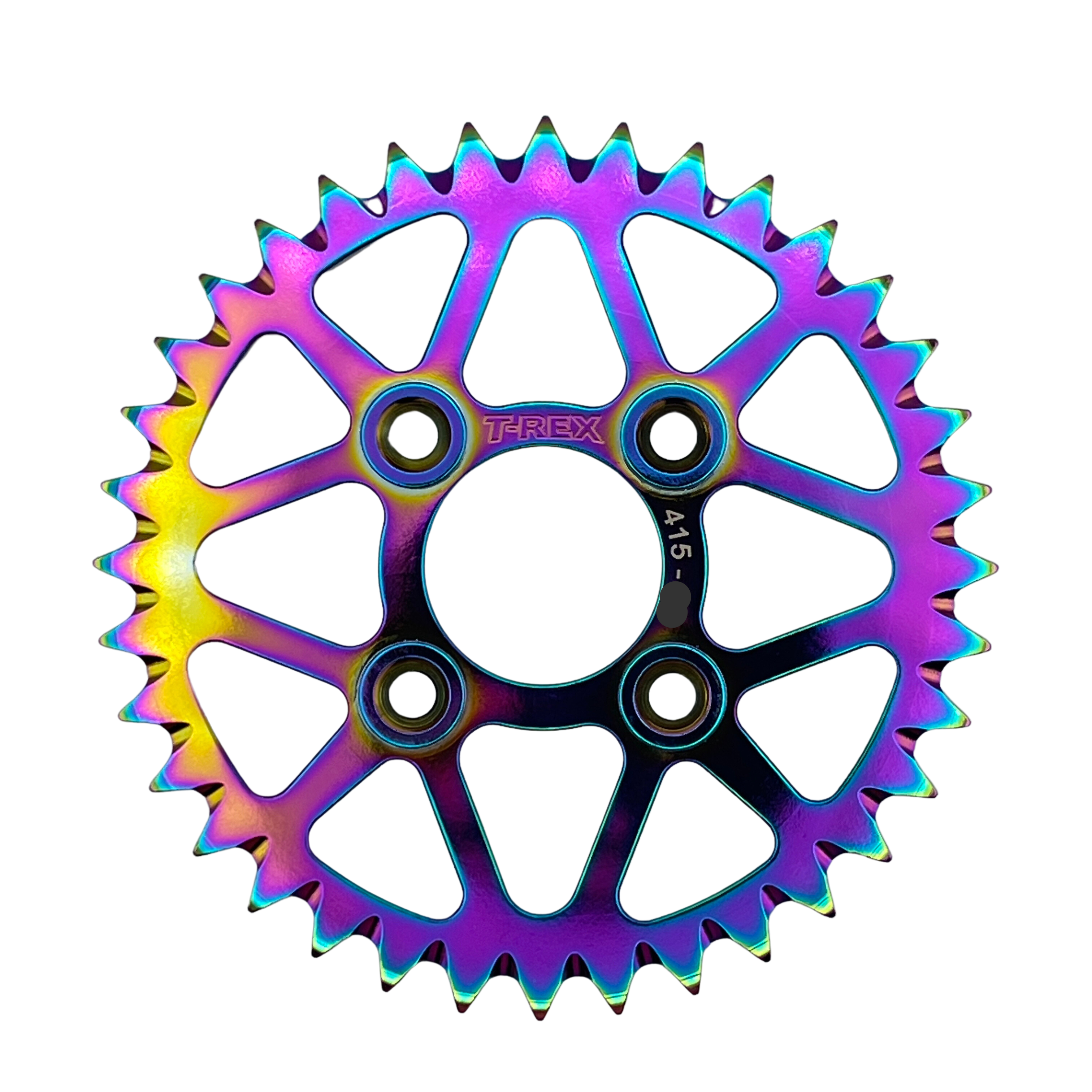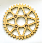 Super light, certified 7075 billet aluminum with precision engineered mud grooves, reducing rolling resistance and chain binding in muddy conditions. Designed to work with 415 or 420 chain. This is the highest quality racing sprocket available, specifically engineered for Cobra motorcycles.